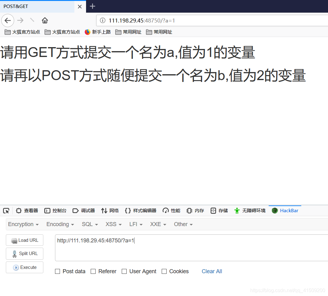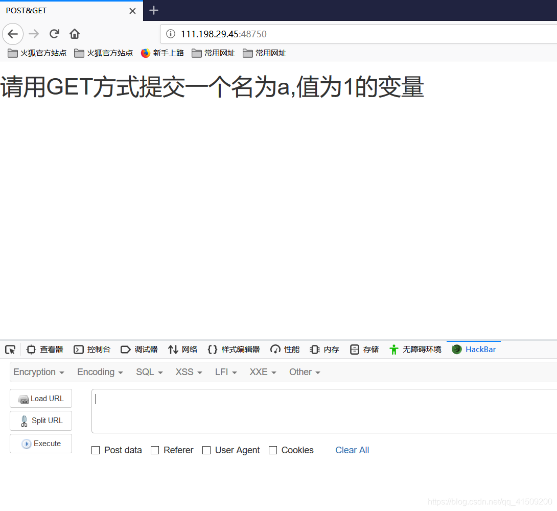 用Firefox打开题目链接后出现:请用GET方式提交一个名为a,值为1的变量