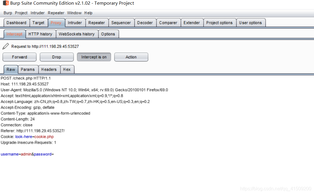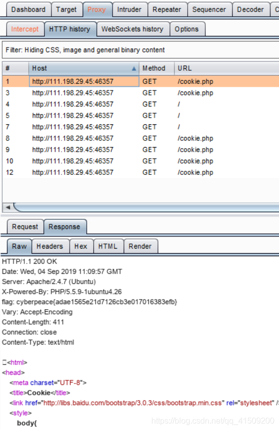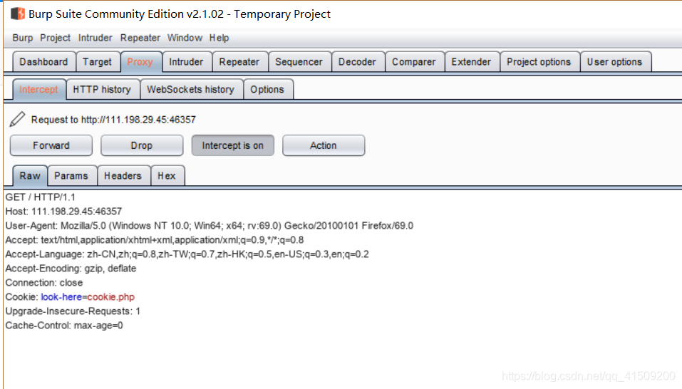 于是便开始用burpsuite抓包分析,找到cookie:look-here=cookie.php
