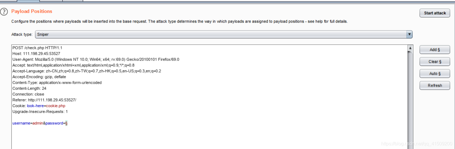 然后,我这两天在研究弱口令的题目,所以就往这个方向来试,利用burpsuite的Intruder来试试吧
