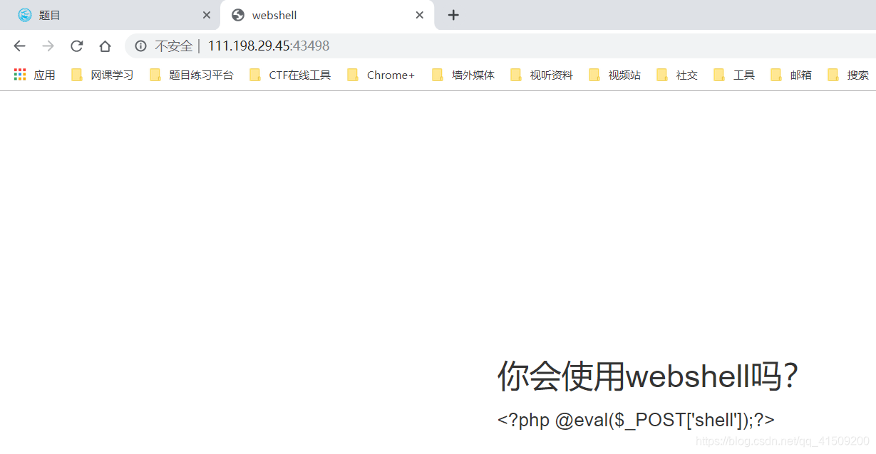 首先,打开题目链接显示一个挑衅你的界面,瞧不起谁啊,看我用中国蚁剑搞定你: