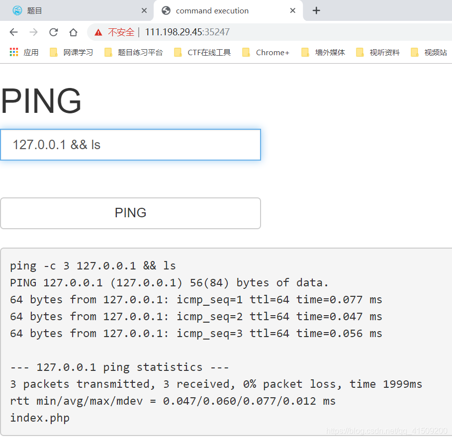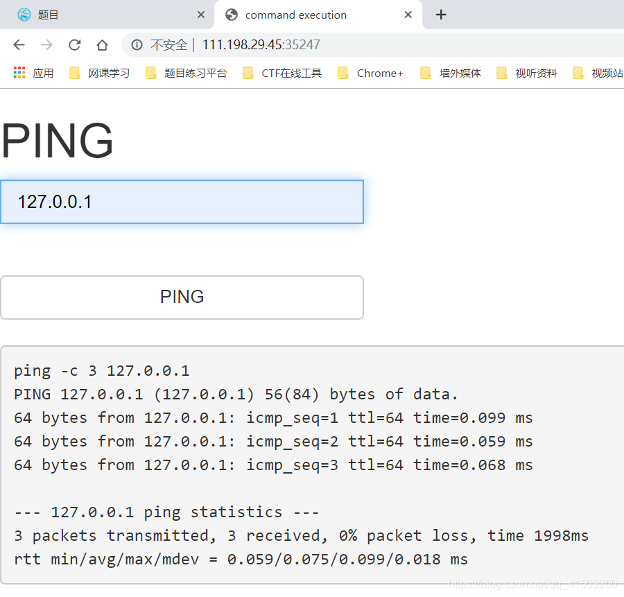 对于看到ping或者ping命令却没有弄waf时就要想到命令注入。
