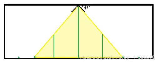 蒜头是个爱学习的孩子,他总喜欢在生活中做一些小实验,这次蒜头想研究一下光合作用。蒜头的实验材料有如下几样:神奇的种子,普通的纸箱和一些光源。一开始,蒜头将种子均匀的种在了箱子底部,你可以将其看成 X 轴,种子的位置为 X 轴上的点。然后蒜头用纸板将箱子盖住,并在纸板上安装了一些光源(具体见图,顶上的为光源,光源两边与顶部的夹角都为45度,黄色部分为光照,绿色的为植物。)。神奇的种子会在有光的情况下一直向上生长直到没光为止。现在蒜头想知道当实验结束时每颗种子的高度是多少?