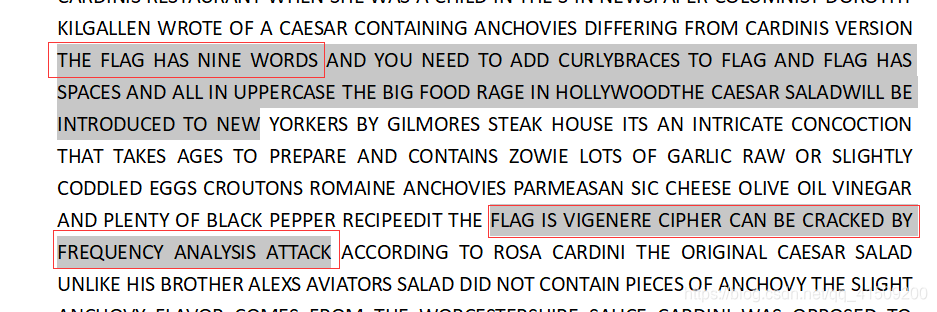 FLAG{VIGENERE CIPHER CAN BE CRACKED BY FREQUENCY ANALYSIS ATTACK}